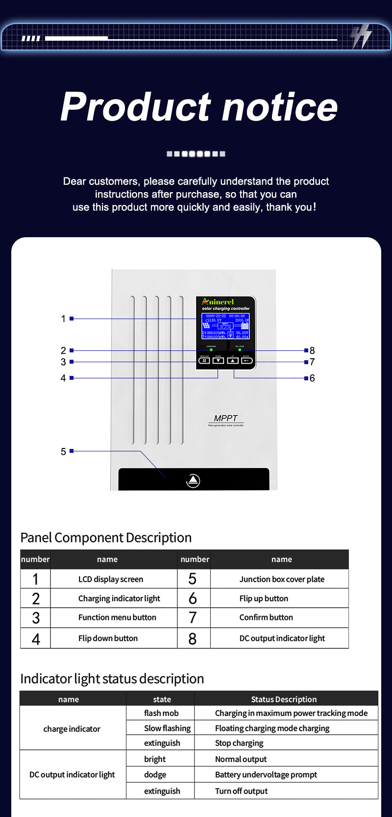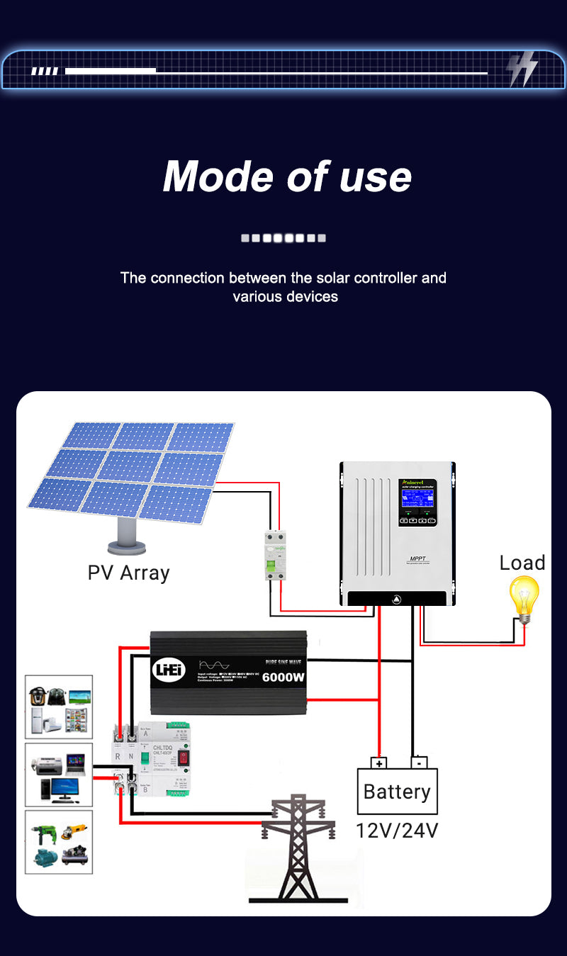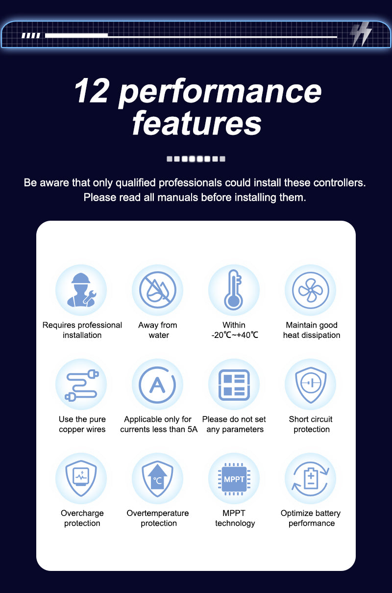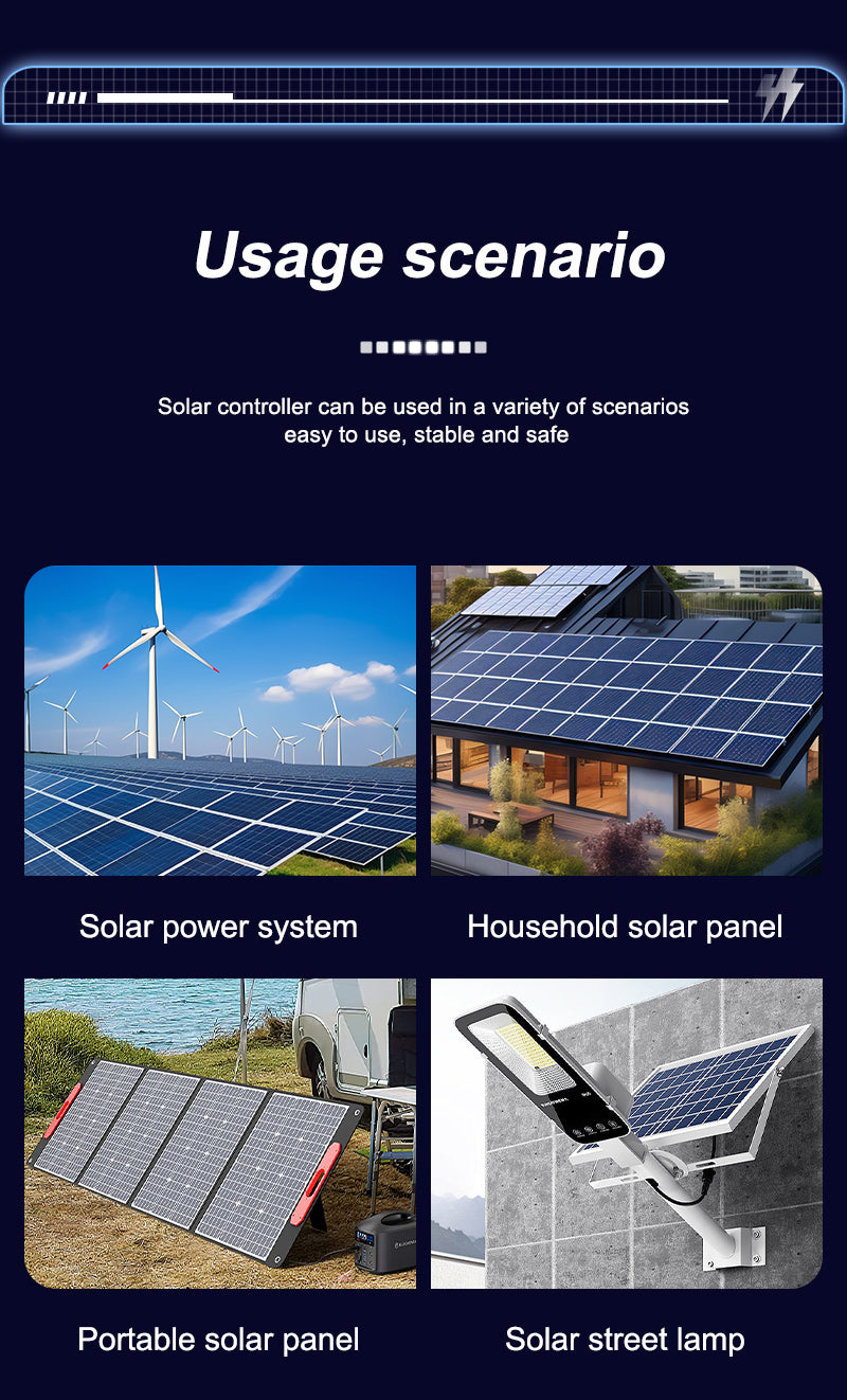 Aninerel 100A MPPT Solar Charge Controller is a high-efficiency solar regulator with auto-adapt 12V/24V/36V/48V, max 150V PV input. Equipped with back-light LCD display, it provides stable battery charging, full safety protections, and is ideal for various solar power scenarios.
