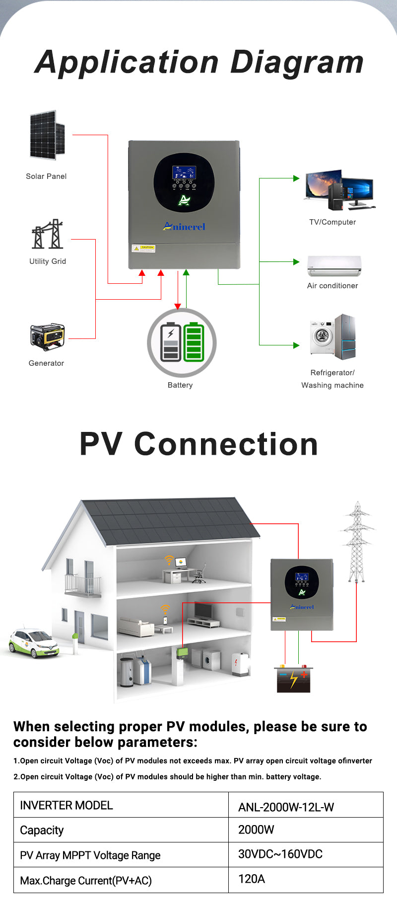The 2000W power output is ideal for small homes, RVs, and boats.