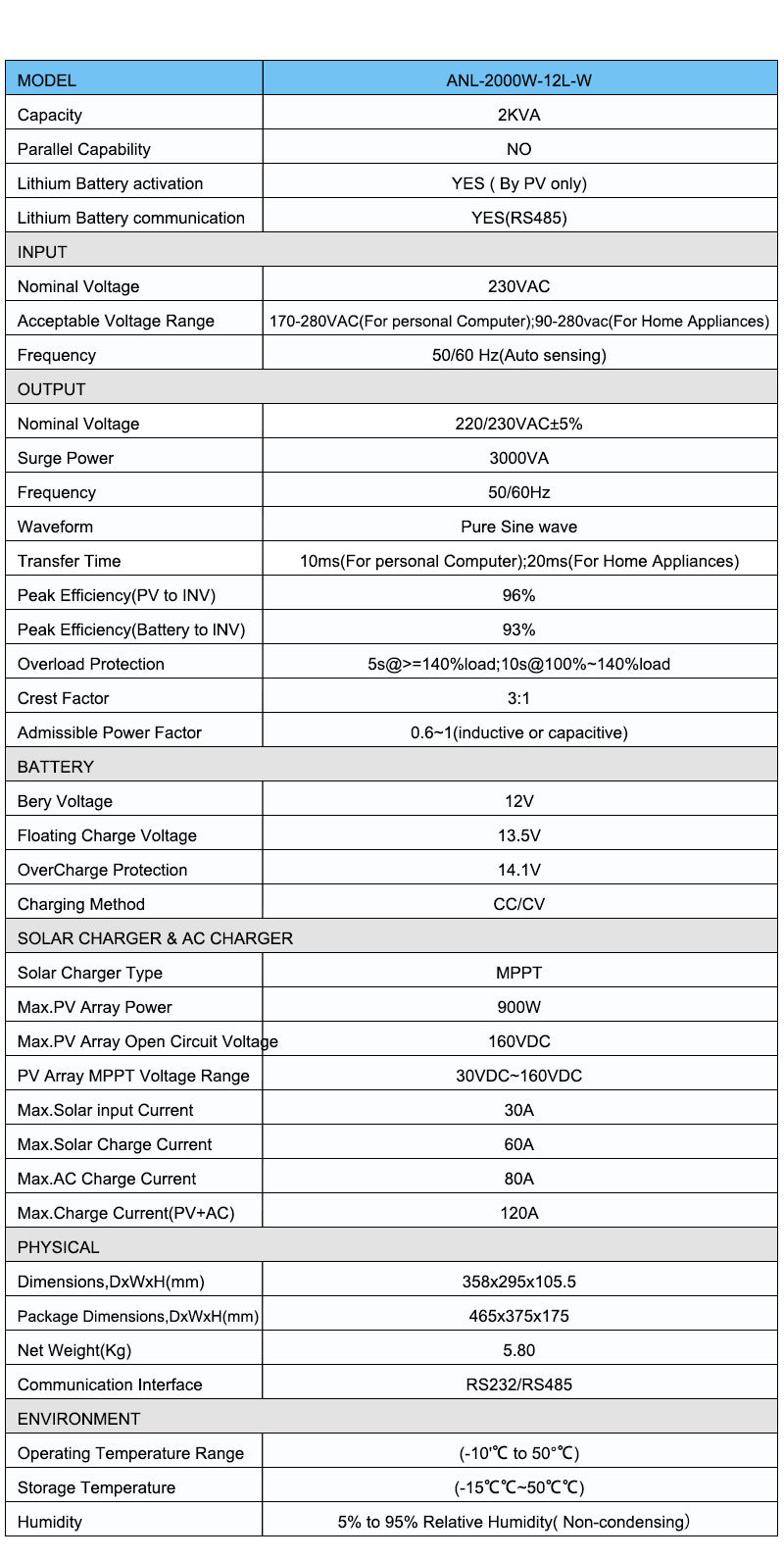 This inverter can provide ample power for everyday low-power appliances such as lighting, TVs, fans, and small refrigerators.
