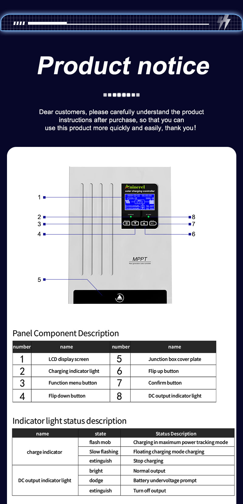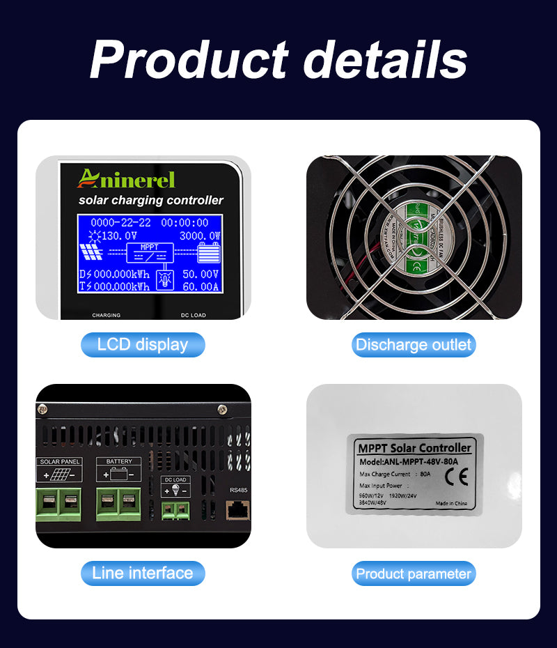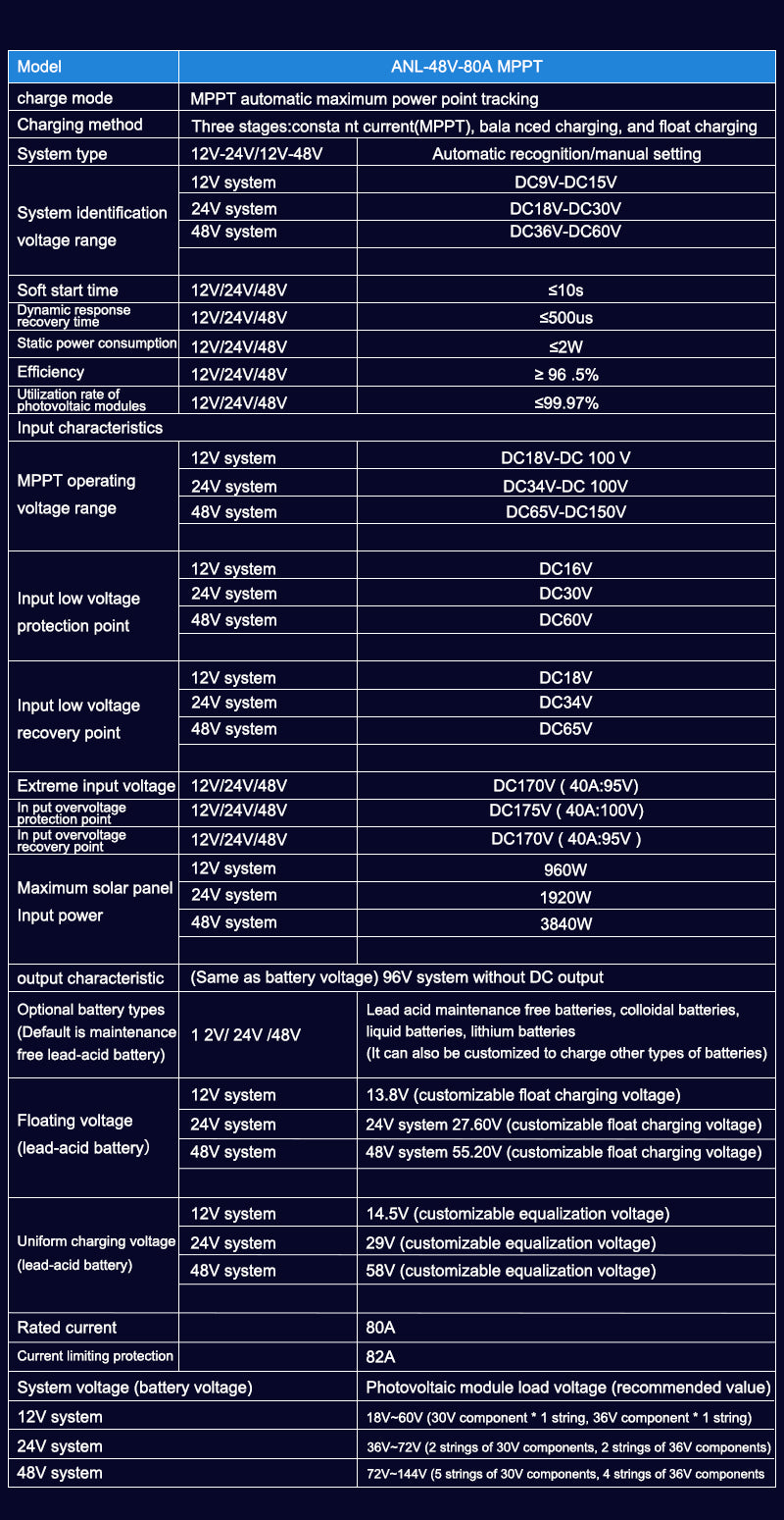 Aninerel 80A MPPT Solar Charge Controller 12V 24V 36V 48V Battery Charger Back-light LCD Solar Regulator